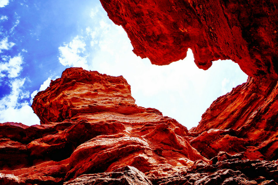 阿拉善左旗敖伦布拉格大峡谷 流淌在地上霞光