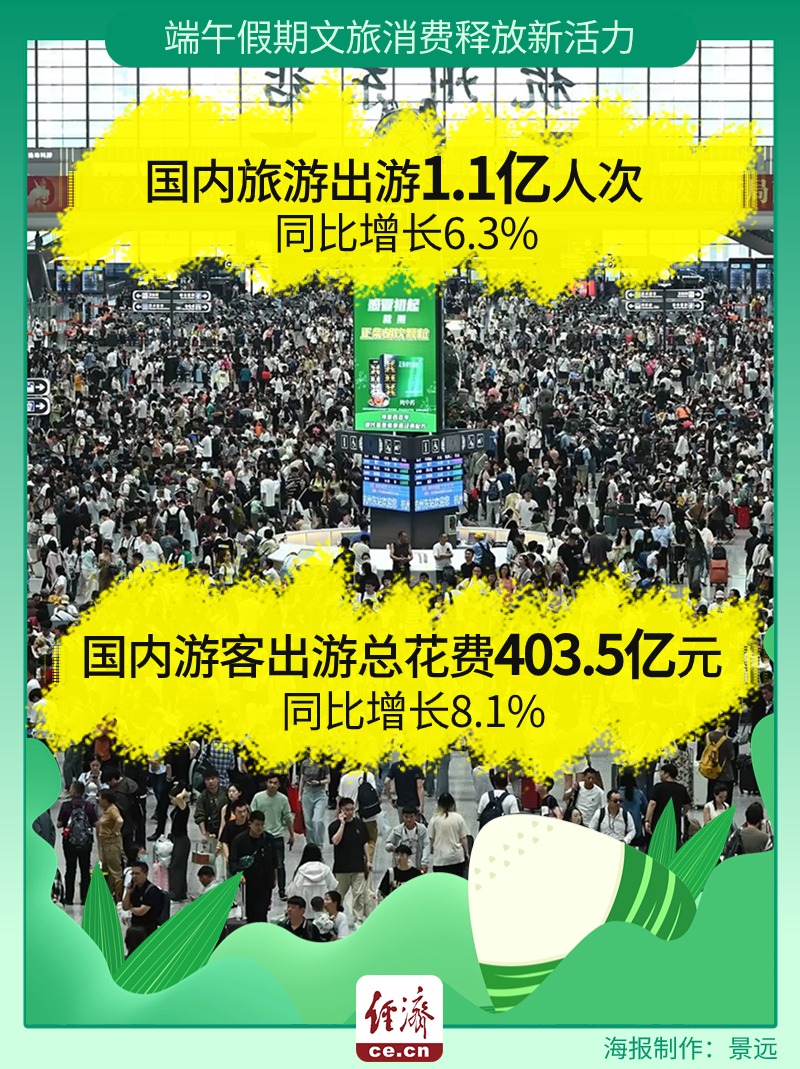 中国经济网6月11日讯(记者 秦佳鸣)山西“古建+非遗”文化游、广东城市圈内“端午民俗游”、“拼假”远赴阿勒泰草原游……端午假期,各类出游热潮为各地文旅消费市场带来新动能。据文化和旅游部消息,2024年端午节假期,全国国内旅游出游合计1.1亿人次,同比增长6.3%;国内游客出游总花费403.5亿元,同比增长8.1%。