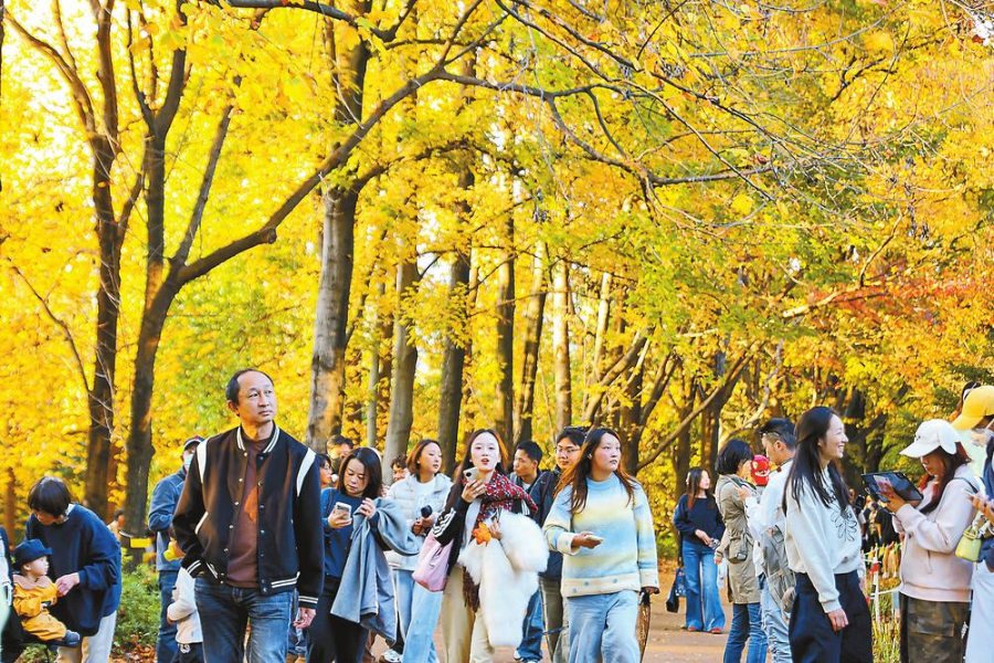 近日,昆明植物园西园的枫香树迎来最佳观赏期。788棵枫香树披上了红、黄、绿交织的“彩衣”,在冬日暖阳下构成一幅斑斓画卷,吸引了众多市民和游客前来漫步赏景。记者 胡妤雅 摄
