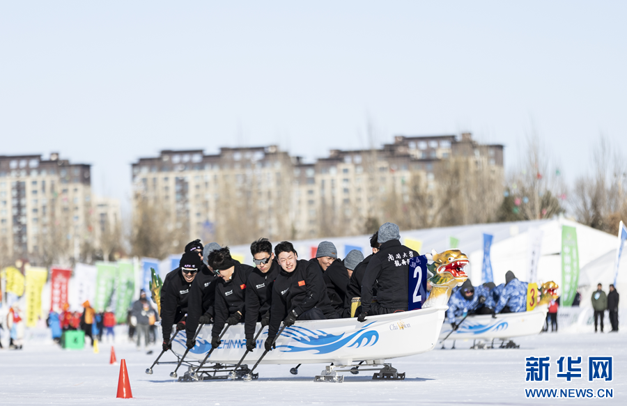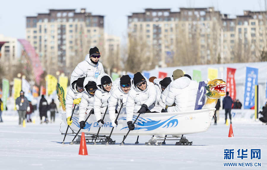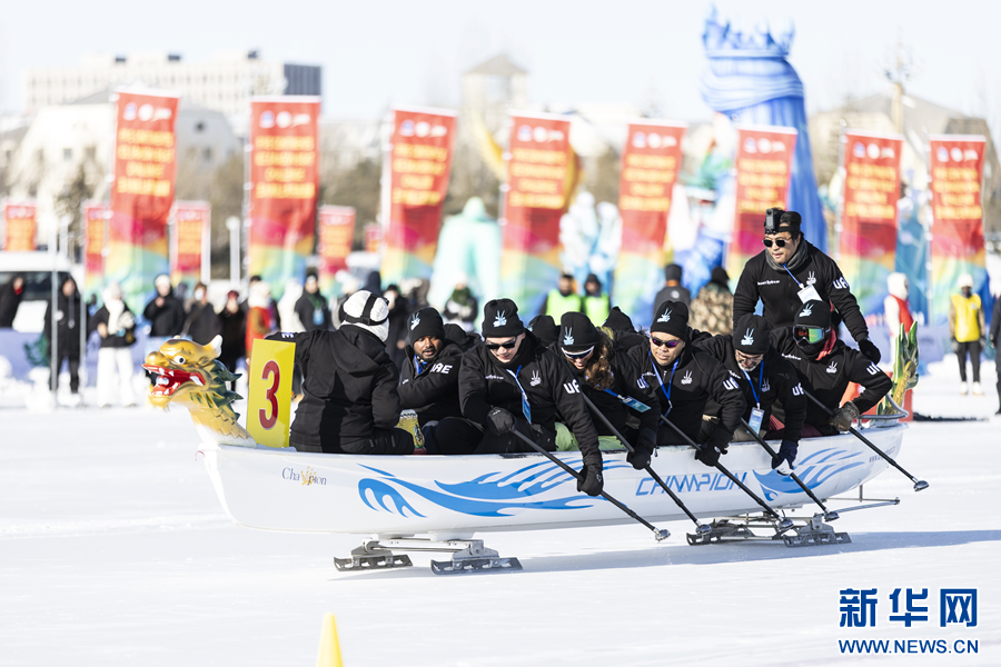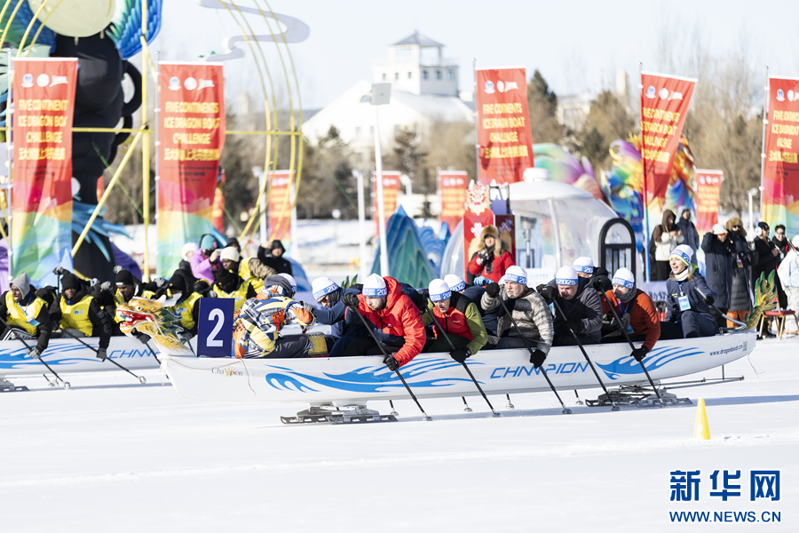 2月2日,五大洲冰上龙舟挑战赛在内蒙古自治区锡林郭勒盟锡林浩特市锡林湖冰场开幕。来自中国、俄罗斯、美国、英国、德国、阿联酋、澳大利亚、菲律宾等21个国家和地区的29支队伍、近600名运动员齐聚冰雪草原,以冰为赛道,以桨为纽带,在凛冽寒风中上演“冰上速度与激情”。